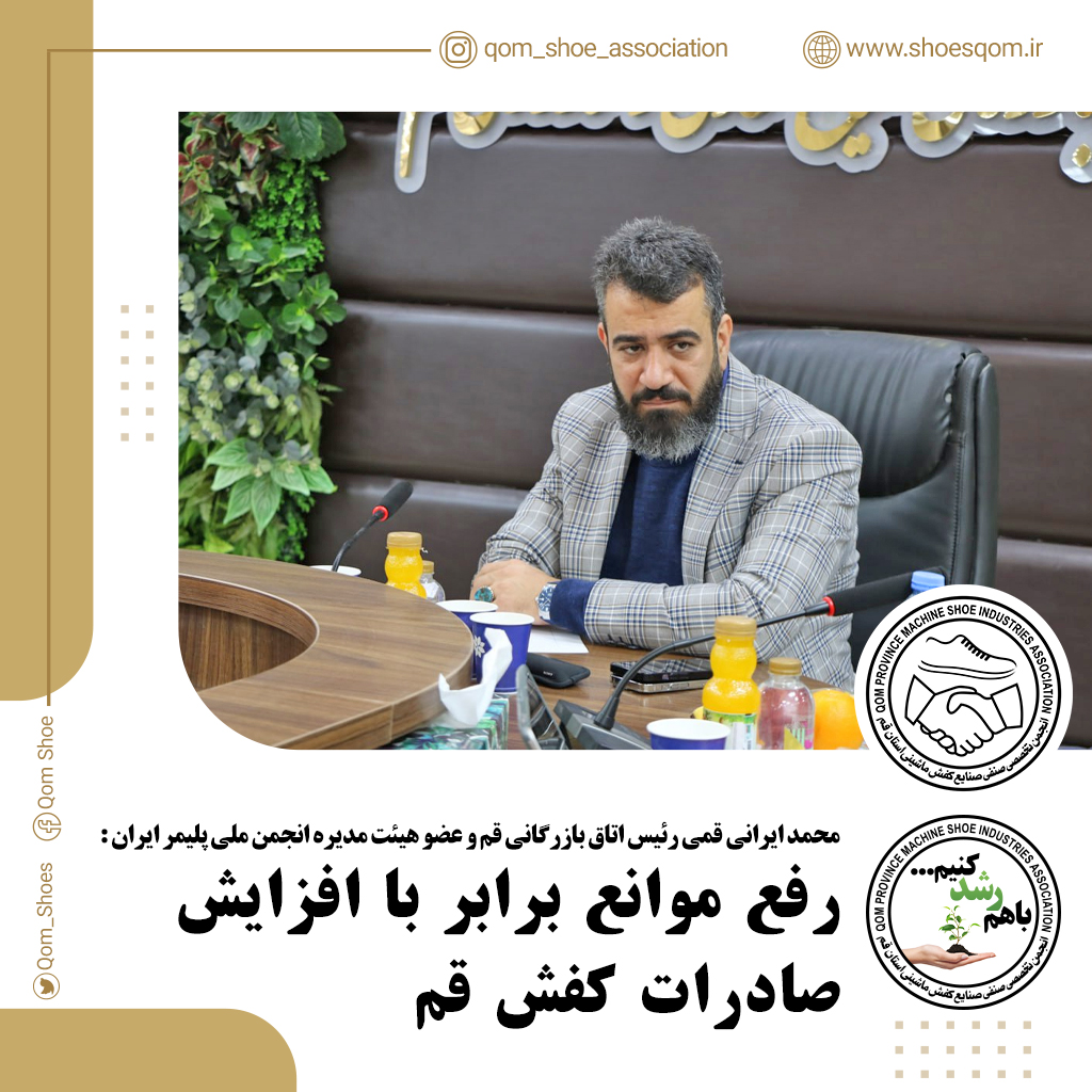 محمد ایرانی قمی رئیس اتاق بازرگانی قم و عضو هیئت مدیره انجمن ملی پلیمر ایران در نشست صمیمی با تولید کنندگان صنعت کفش استان قم اظهار کرد صنعت کفش را یکی از اشتغالزاترین صنایع استان دانست و خاطر نشان کرد: حل معضلات حوزه بازرگانی و تجارت خارجی صنعت کفش از اولویت های اتاق بازرگانی قم میباشد.