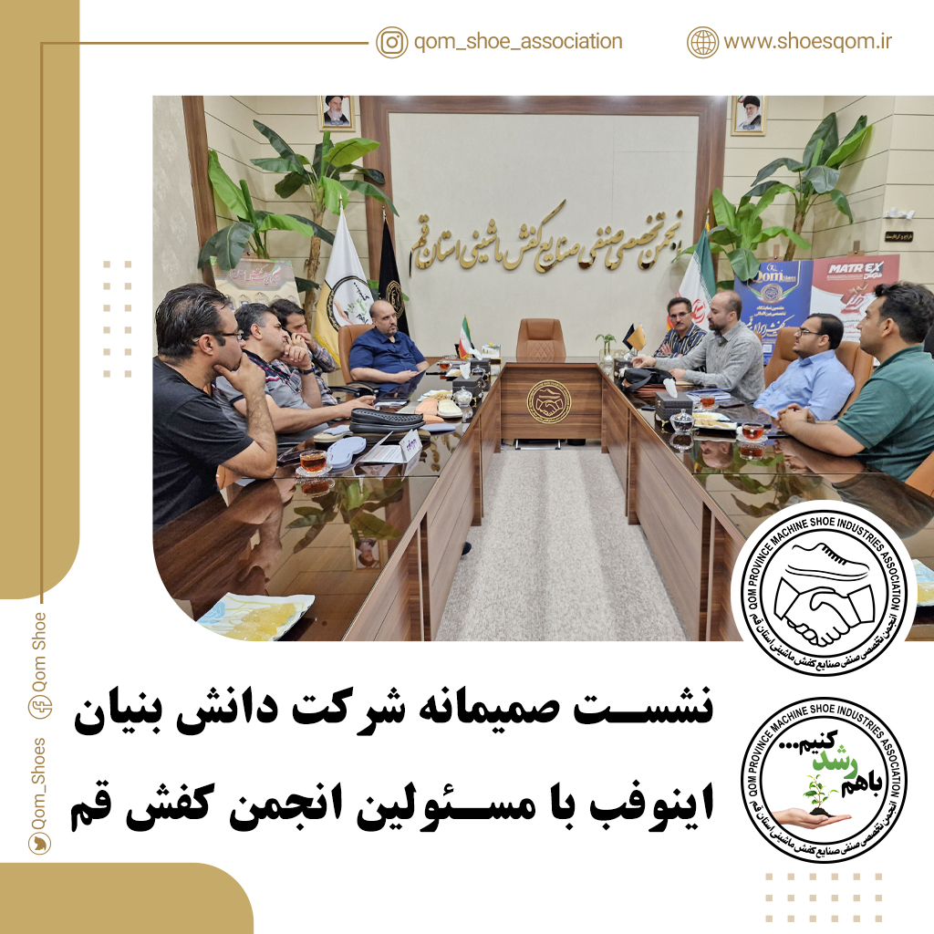 به گزارش روابط عمومی انجمن کفش قم در نشست صمیمانه ای که میان شرکت دانش بنیان اینوفب با مسئولین انجمن کفش و نخبگان صنعت کفش برگزار شد به مباحثی پیرامون چالش های راهاندازی رشته صنعت کفش در استان قم پرداخته شد.