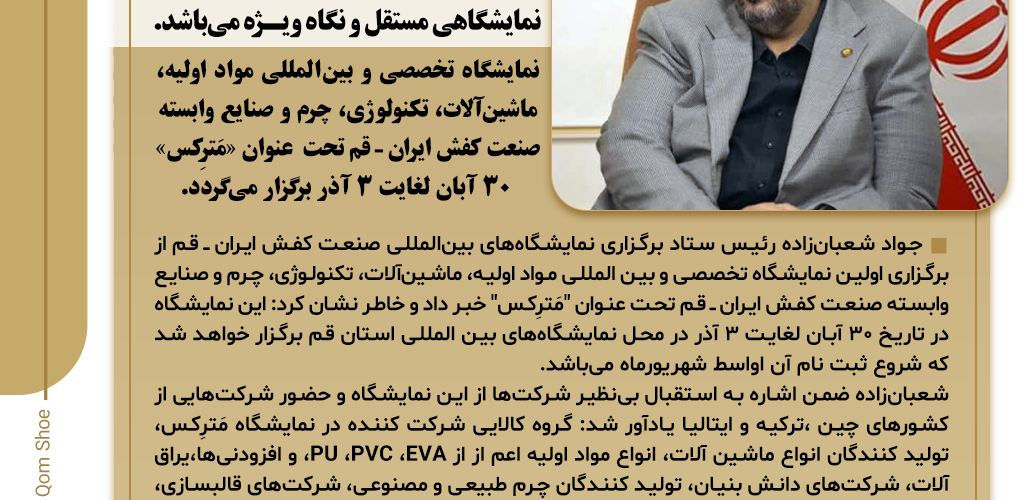 صنایع وابسته صنعت کفش ایـران نیازمند نمایشگاهی مستقل و نگاه ویـژه میباشد.روابط عمومی انجمنسپتامبر 2, 2023جـواد شعبـانزاده، ر ئیس انجمن تخصصی صنفی صنایع کفش ماشینی استان قم عنوان کرد: صنایع وابسته صنعت کفش ایـران نیازمند ... ادامه مطلب
