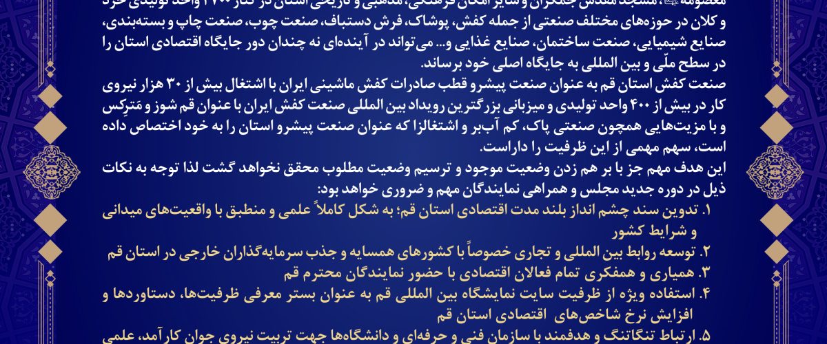 حضور نماینده جوان منتخب مردم قم در انجمن کفشروابط عمومی انجمنمارس 17, 2024روز گذشته محمد منان رئیسی نماینده جوان منتخب مردم قم ضمن بازدید از بازار کفش قم در انجمن کفش ماشینی ... ادامه مطلب